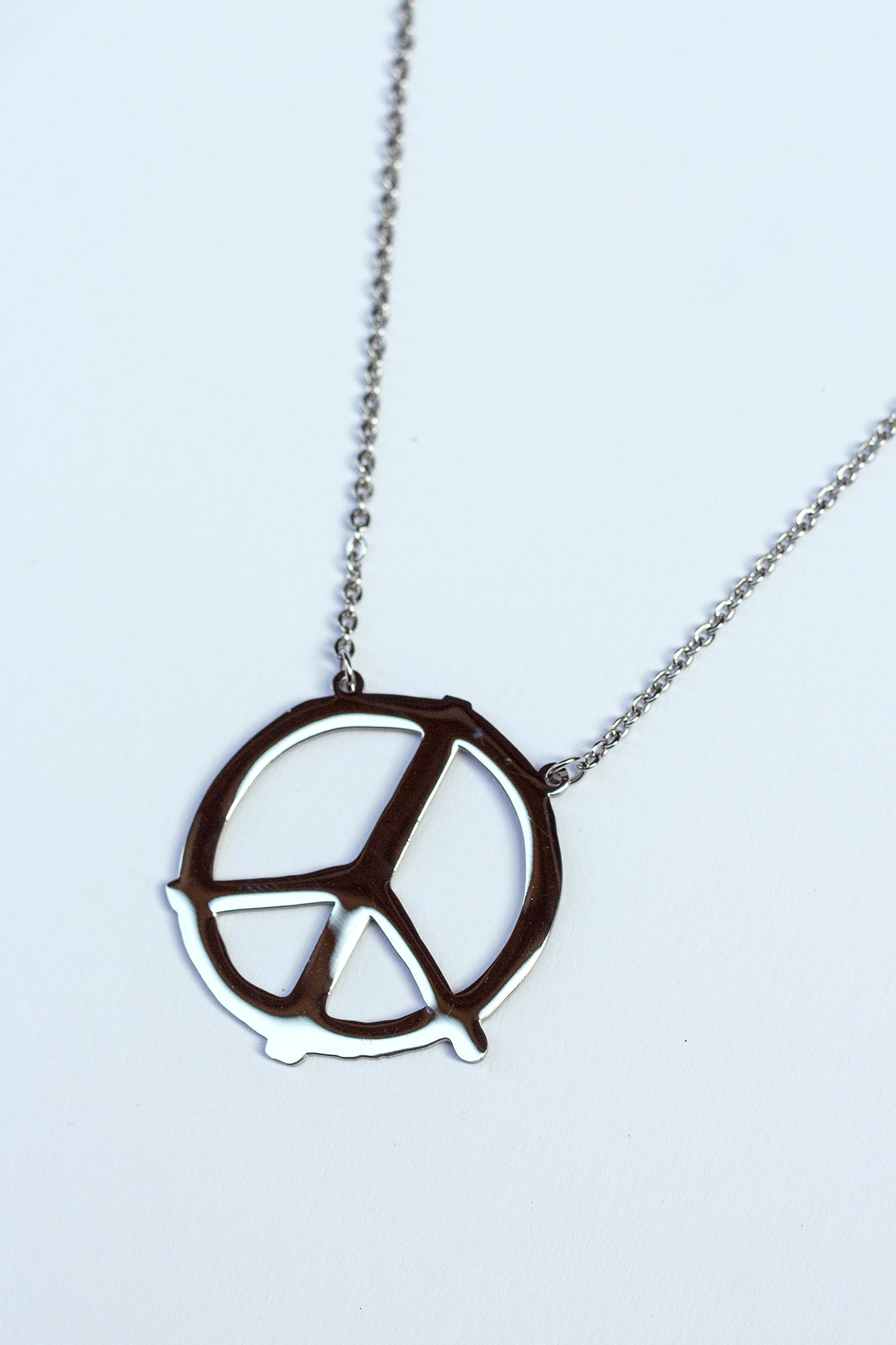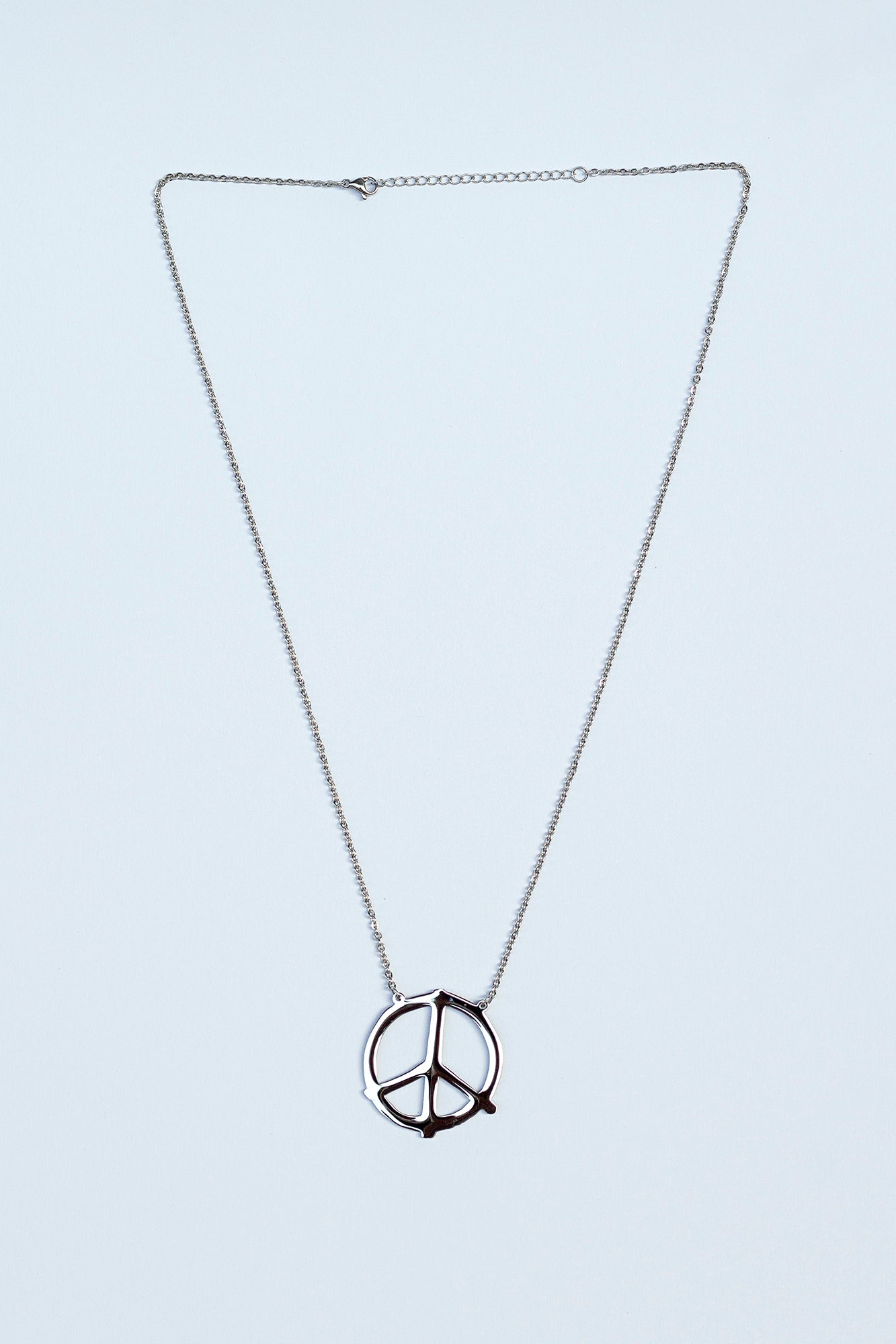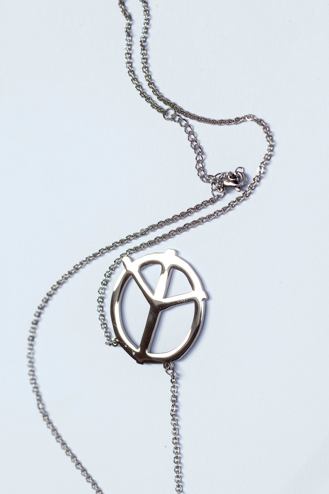 One Wolf unisex necklace, colour: Shifting Grey. One size. Peace sign charm. 100% Stainless Steel.
