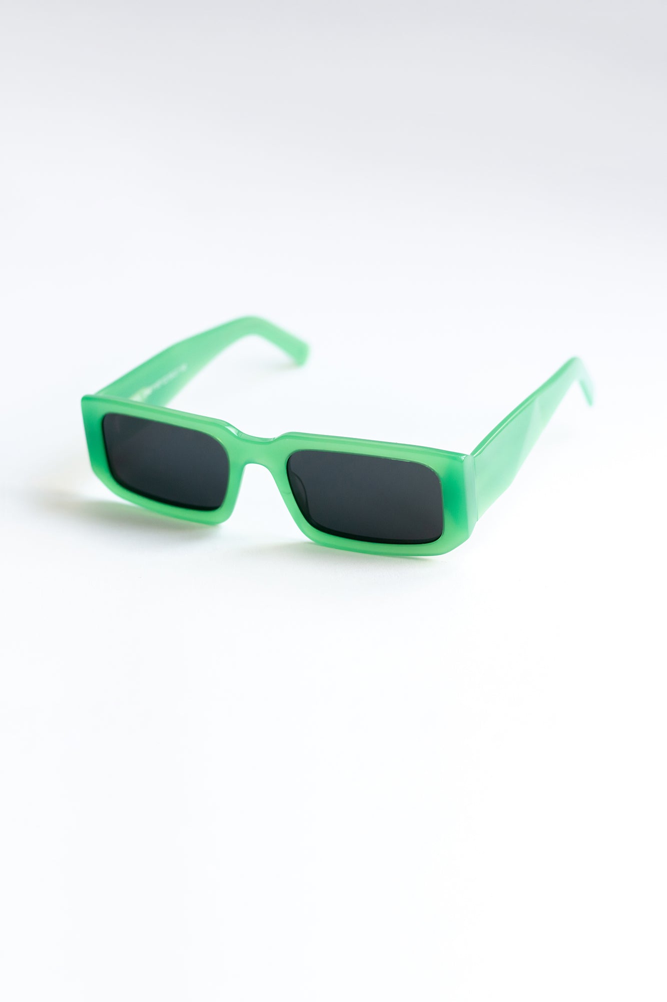 Green acetate frame, black glass, engraved "one wolf" on one of the lenses and a small engraved One Wolf's head at the temple tips.