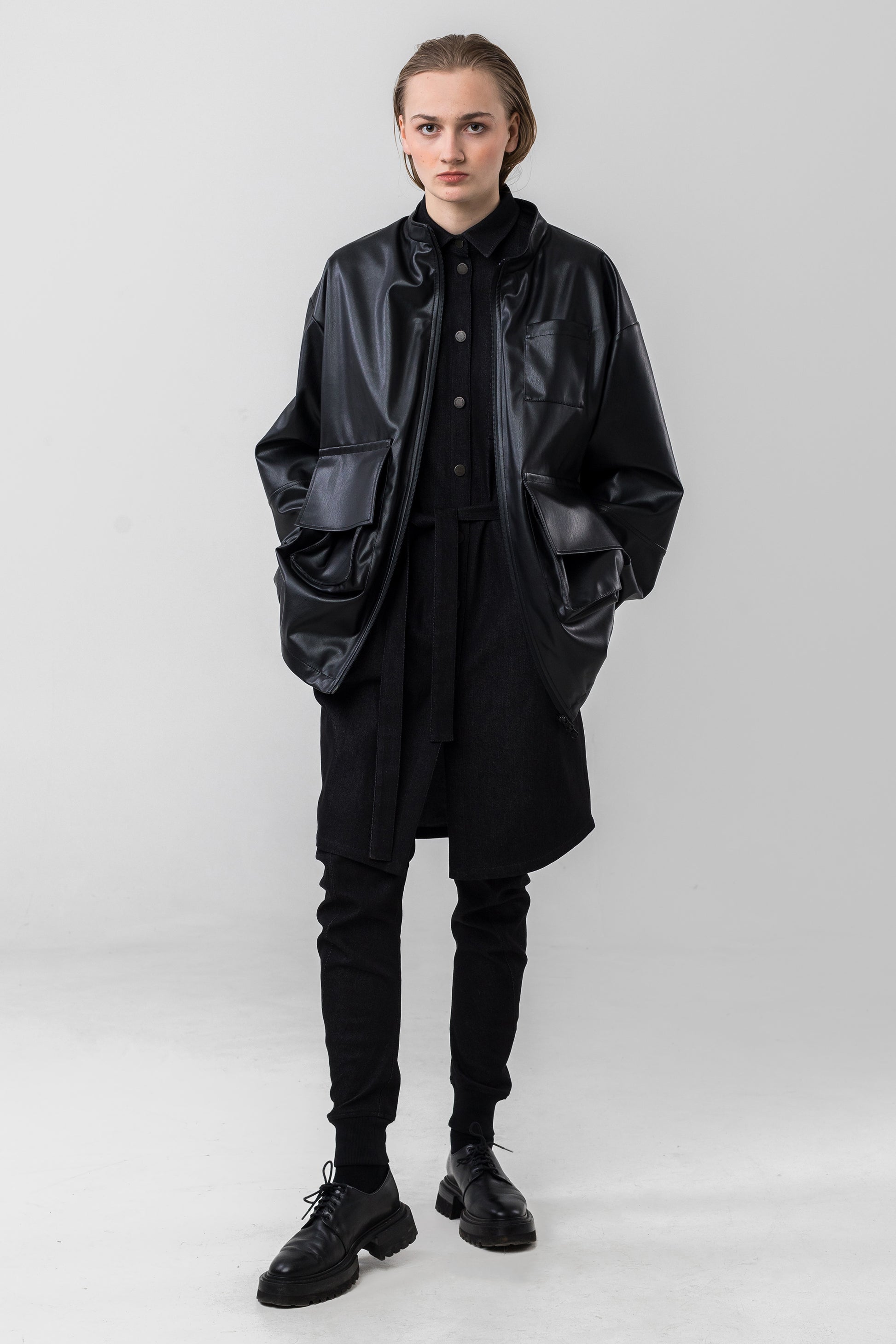 You deserve a jacket that is both stylish and ethical, and that's exactly what you'll get with our UNIFORM vegan leather jacket! With an oversize fit and three useful pockets, it's the perfect combination of functionality and fashion. And unlike traditional leather jackets, this one is made from 57% polyester and 43% PU vegan leather, so you can feel good about your purchase. Plus, this jacket comes in classic black, so you can easily pair it with any outfit. Upgrade your wardrobe and make a statement with our premium quality vegan leather jacket!