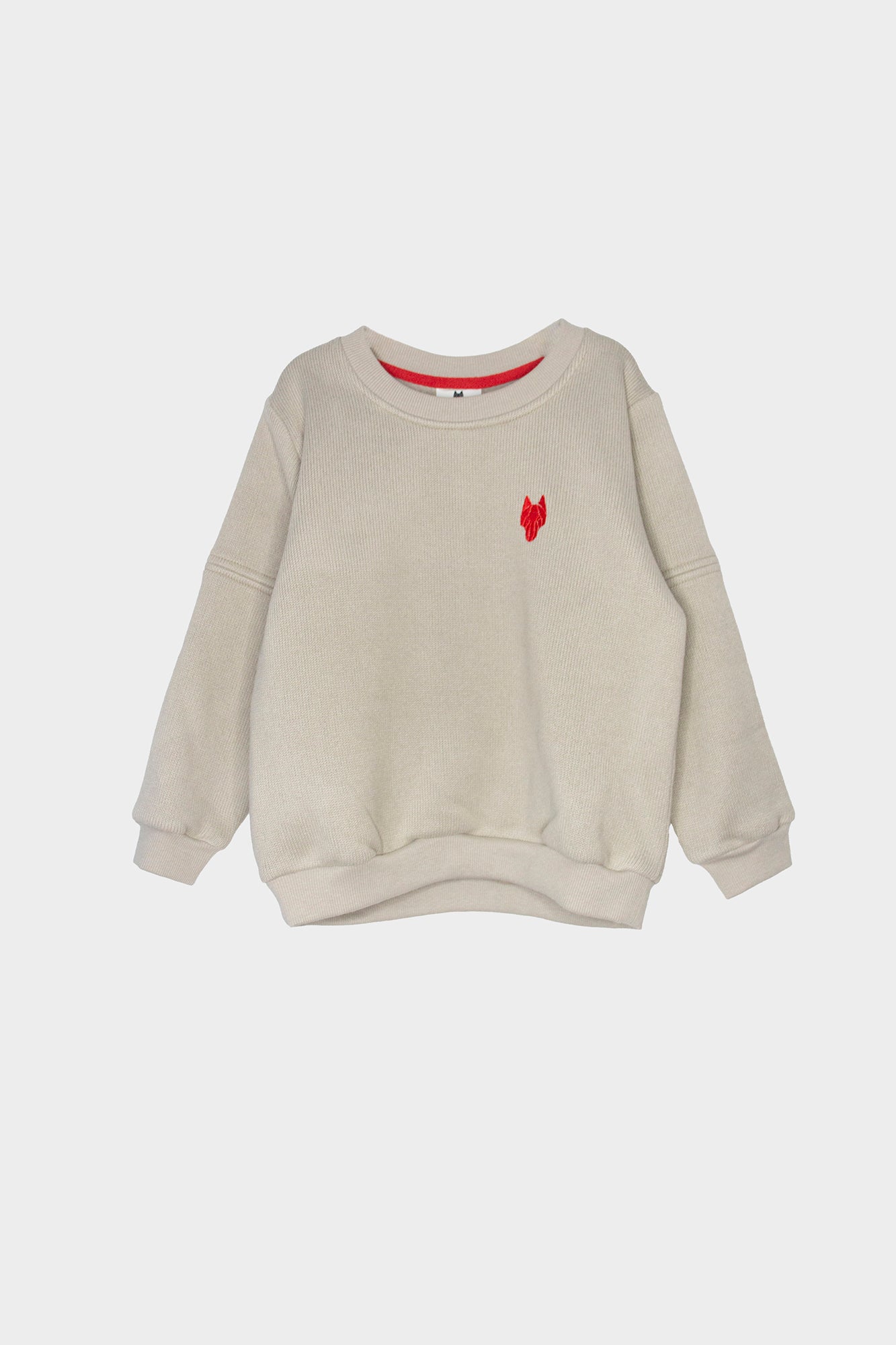 Fancy and cozy, this kid's sweater is a wardrobe must-have. The small One Wolf logo in bright red adds a playful pop of color, sure to catch everyone's eye. With premium materials like 92% cotton and 8% polyester, this sweater is perfect for everyday wear, keeping your little one warm and comfortable all day long. Plus, the brushed inside ensures extra softness against the skin. Now that's what we call a "wolf-worthy" sweater!