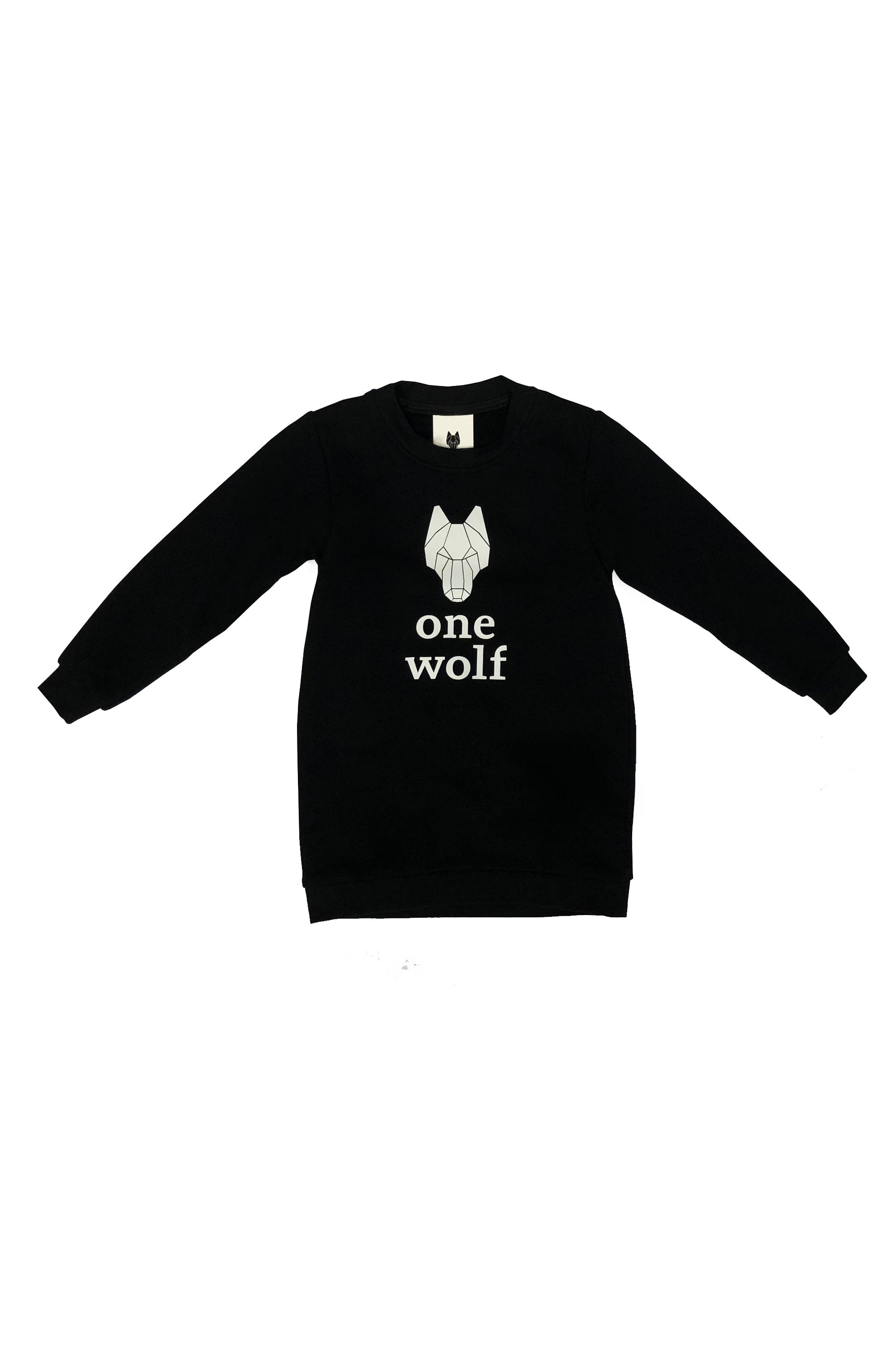 Kid's t-shirt ONE WOLF long sleeve black with white logo