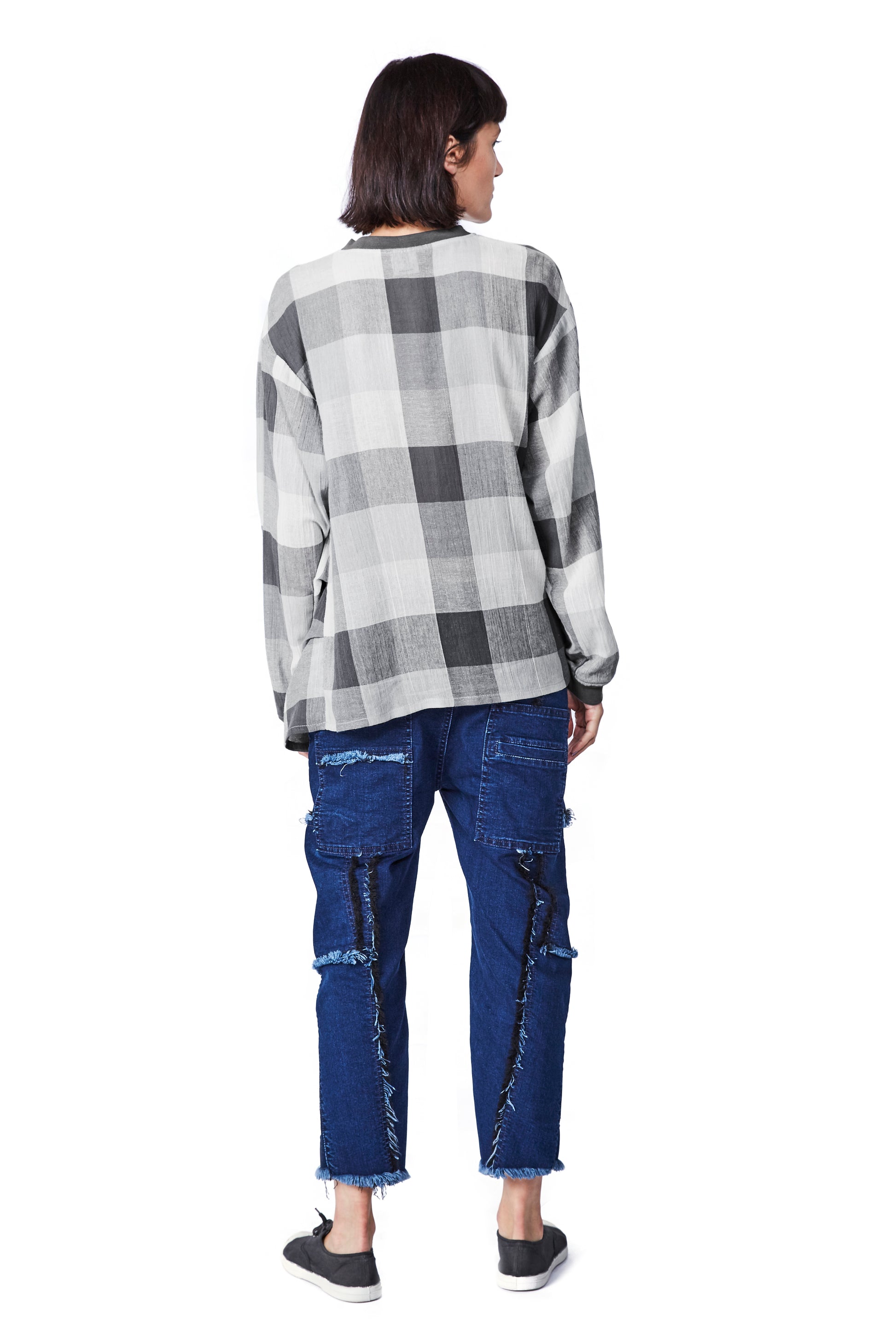 Elpojošs, viegls, ērts džemperis ar rūtainu melnbaltu rakstu. Garas piedurknes un unikāla V griezuma forma mugurpuses lejasdaļā. One Wolf meistaru roku darbs, ražots Latvijā!