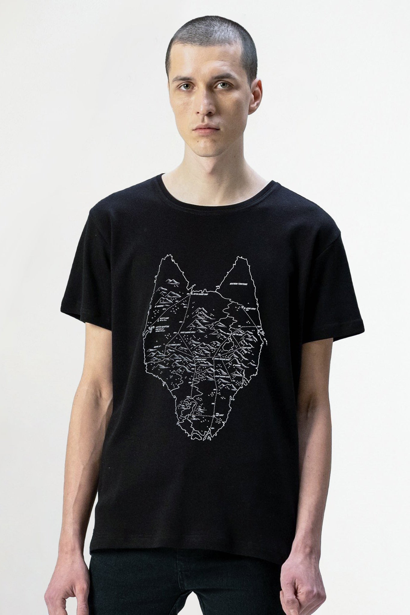 Melns, klasisks unisex krekls, kas izgatavots no 100% kokvilnas auduma, ar nedaudz atlocītām piedurknēm. Priekšpusē unikāla baltā sietspiede ar One Wolf karti. Ražots Latvijā. Mazgāšana veļasmašīnā vai ķīmiskā tīrīšana, saudzīgajā režīmā. Gludināt no kreisās puses. Modelis ir 190 cm garš un nēsā M izmēra T-kreklu.