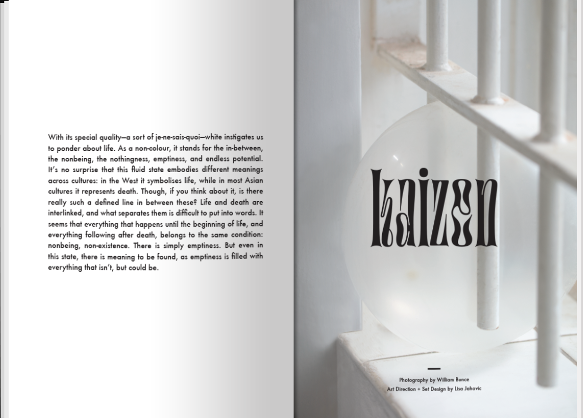 For us, a blank canvas is not only an object in a painter’s atelier. It is the possibilities of nothingness reaching beyond, and it represents the transitions between creativity, emptiness, minimalism, balance, calmness and perfectionism, the main themes this issue explores throughout its 186 pages.