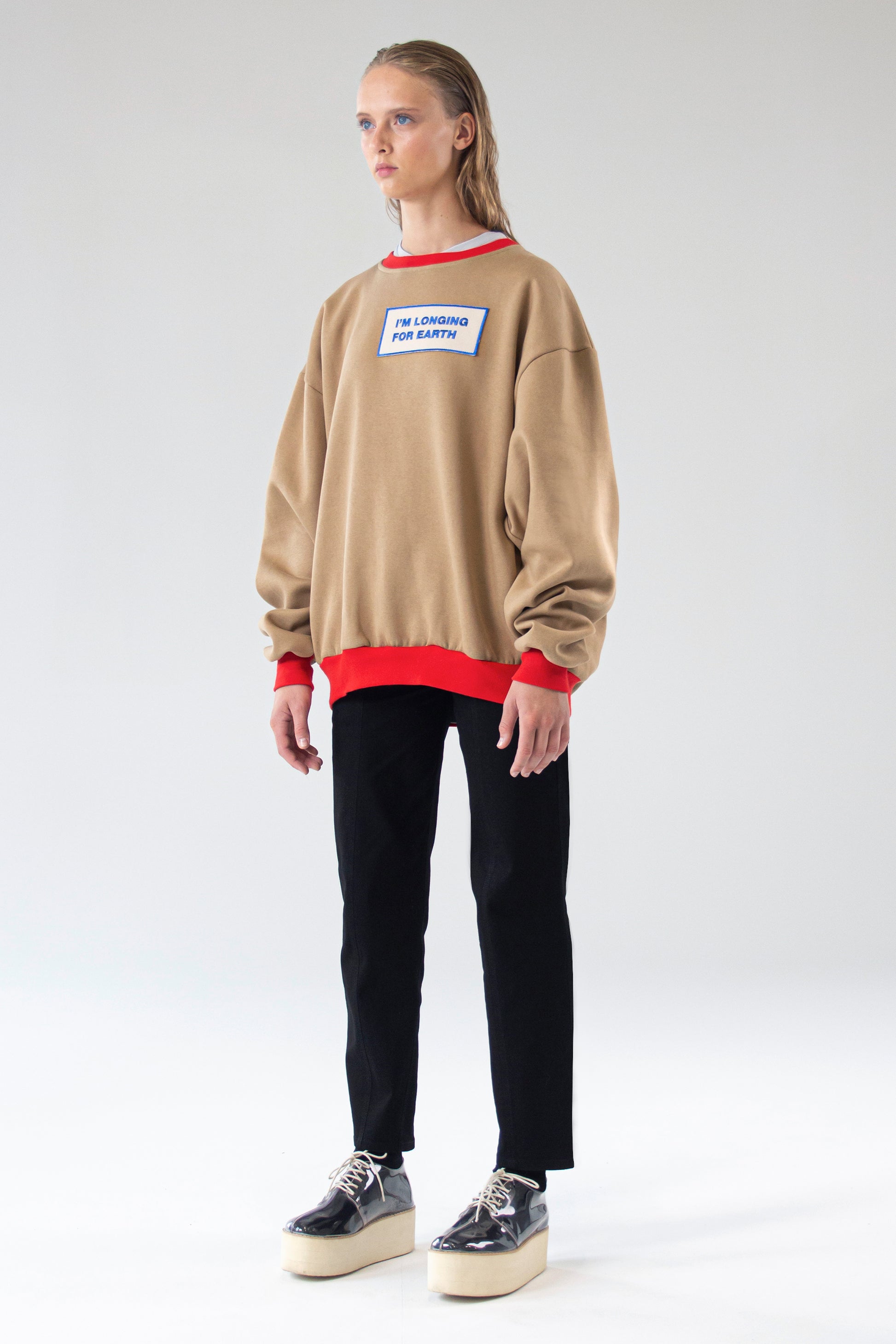 Experience the softness and warmth of our brushed inside, paired with stylish red details. Made from a blend of 80% cotton and 20% polyester, this unisex sweater is perfect for those longing for a cozy and eco-friendly option. With a powerful "I'm longing for earth" embroidery patch on the chest, show your love for the planet while staying comfortable and on-trend.