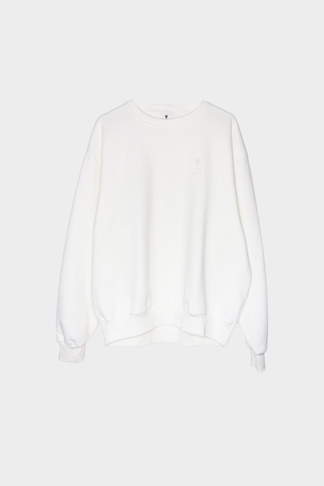 One Wolf lielizmēra džemperis piena baltā krāsā, neuzkārsts.