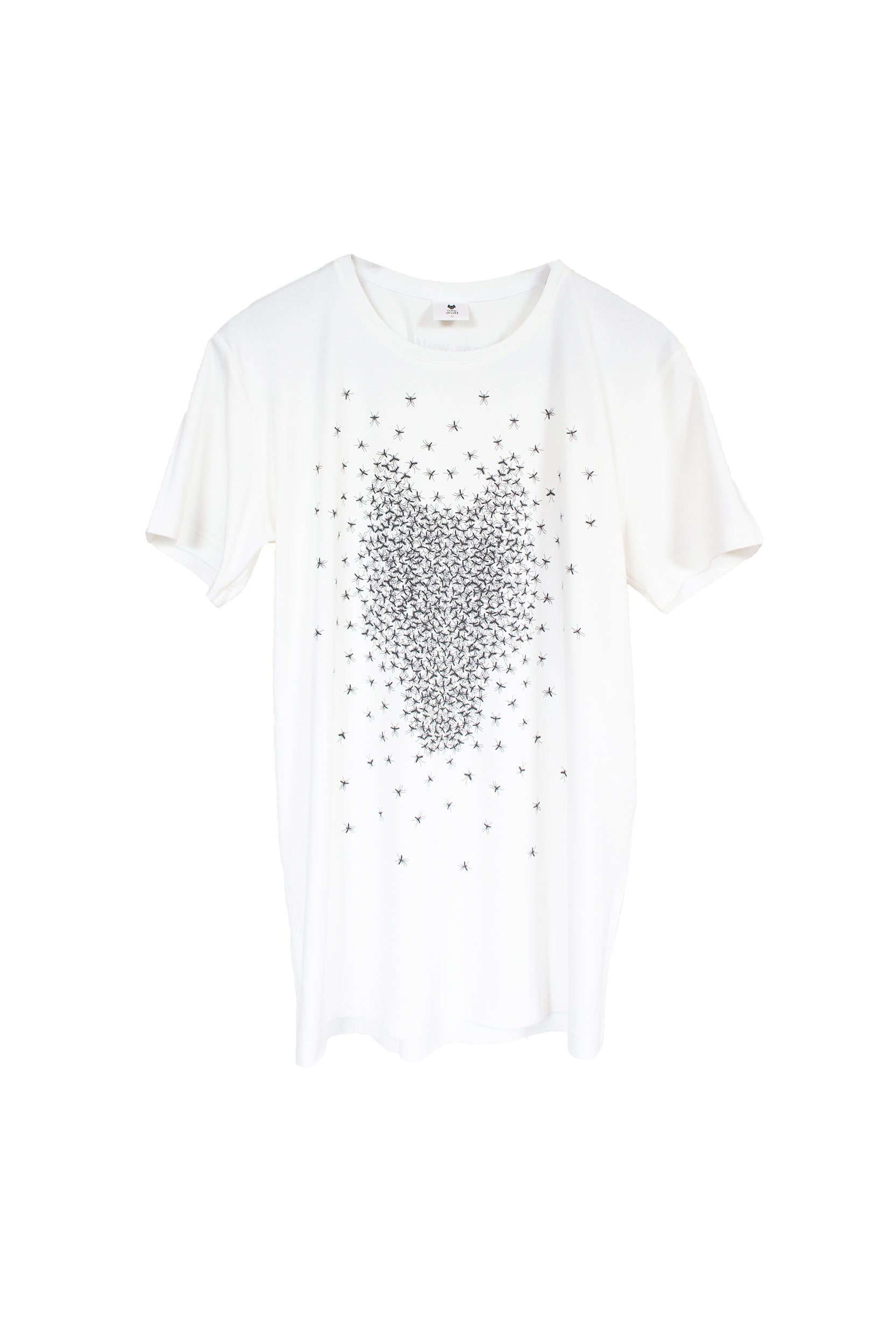 Klasisks unisex T-krekls ar mazu odu grafiku priekšpusē. Izgatavots no 100% augstākās kvalitātes gandrīz baltas kokvilnas auduma. Ražots Latvijā. Veļas mazgāšana mašīnā vai ķīmiskā tīrīšana, delikāts cikls.